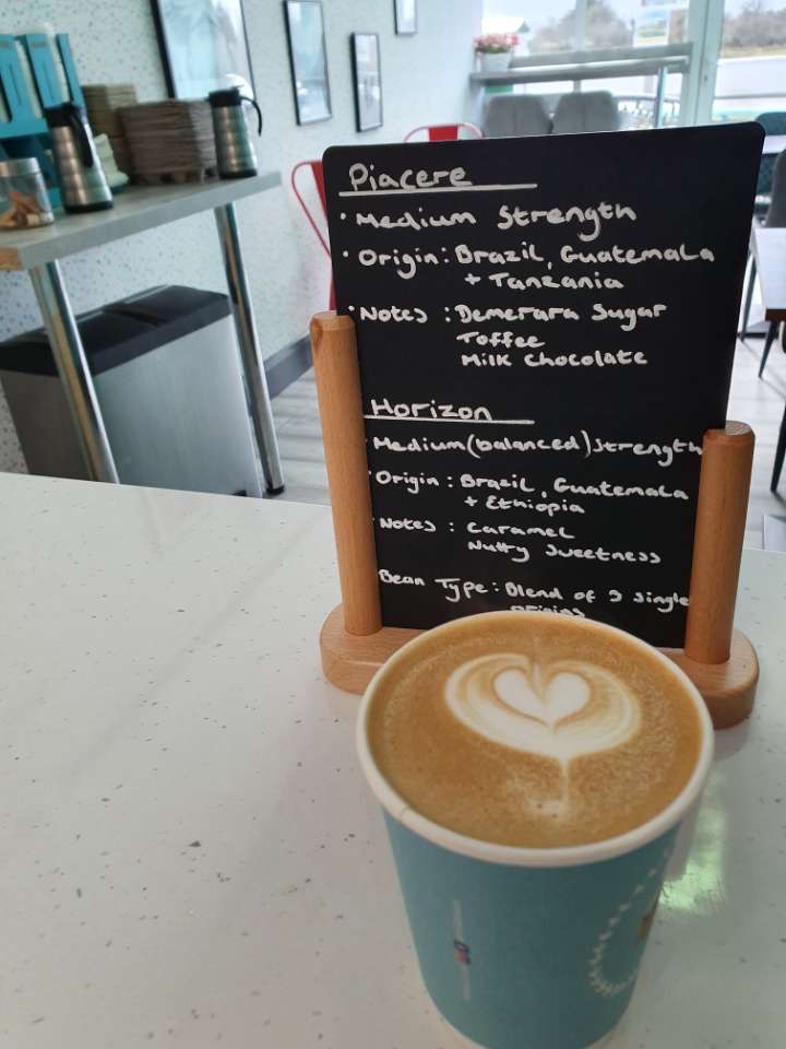The menu is structured primarily around hot beverages and accompanying sweet or light snack items. It caters to customers seeking quick orders or casual dining experiences, offering a straightforward choice between coffee specialties and complementary baked goods or snacks.